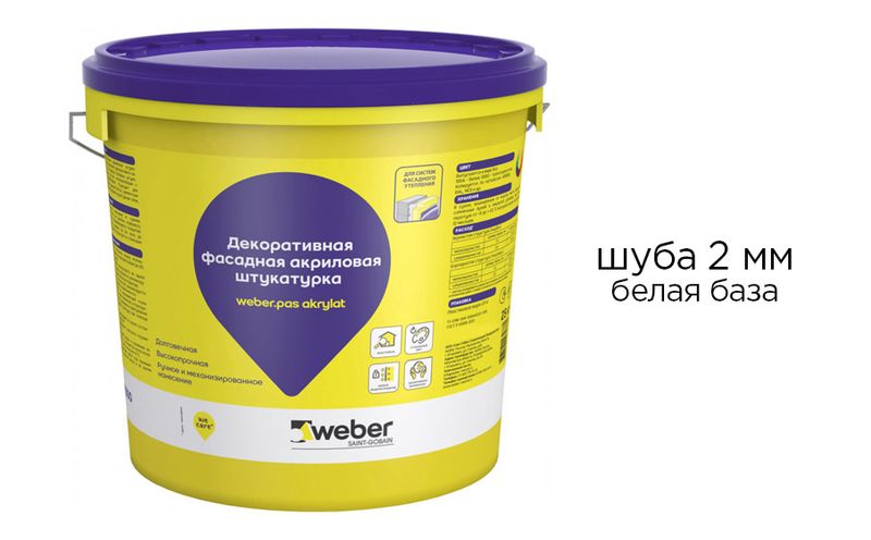 Акриловая фасадная штукатурка weber.pas akrylat шуба 2 мм, белая база, 25 кг
