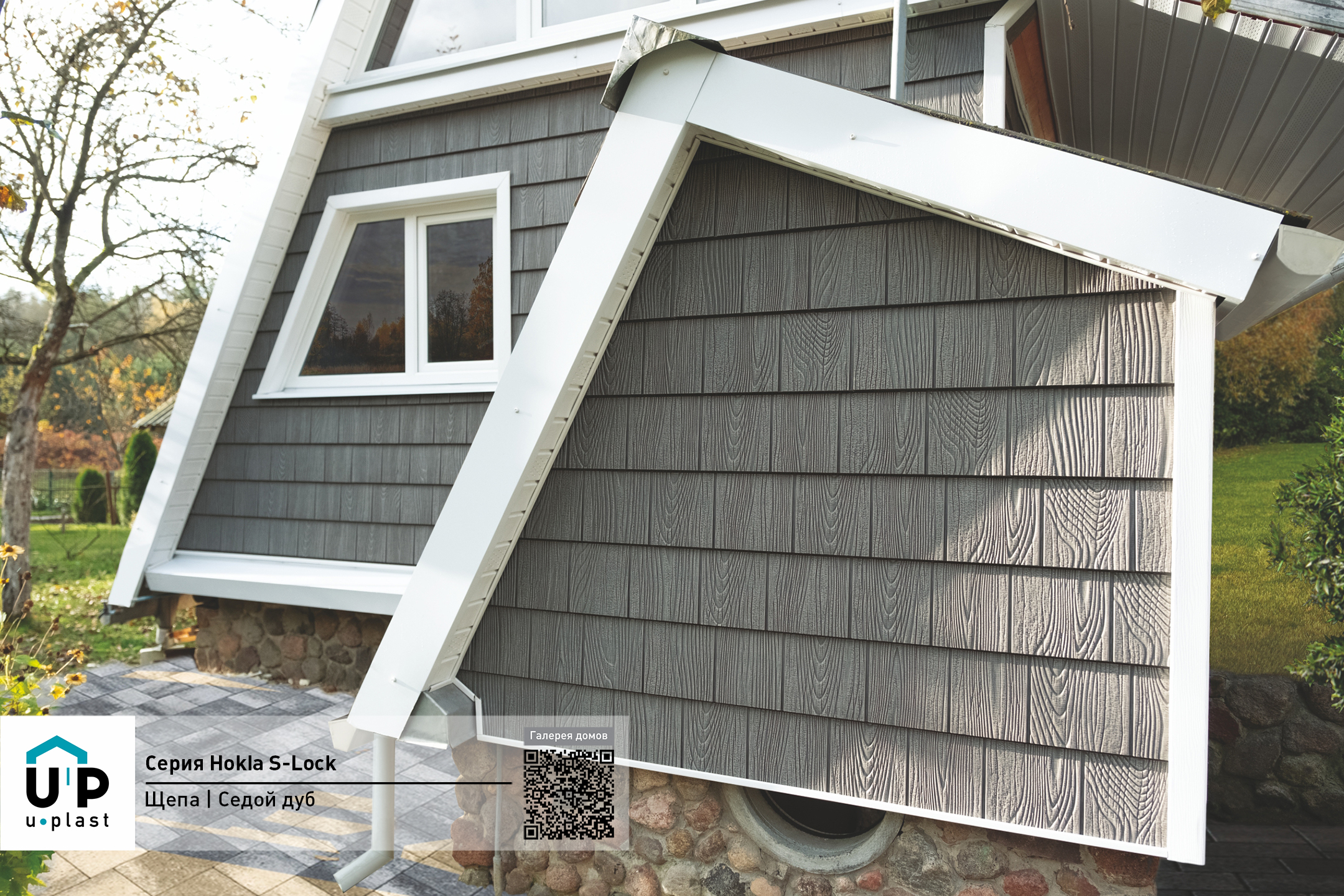 Коллекция Хохла S-Lock Щепа - это фасадные панели под состаренное дерево. Каждая панель детально имитирует натуральную щепу, нарубленной вдоль волокон натурального дерева. Производятся из ПВХ, имеют размер 2000*206 мм, предназначены для отделки фасадов малоэтажных зданий.