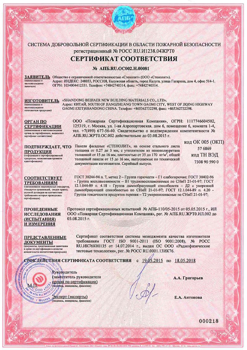 Подтвержденное сертификатами и действующими ГОСТ