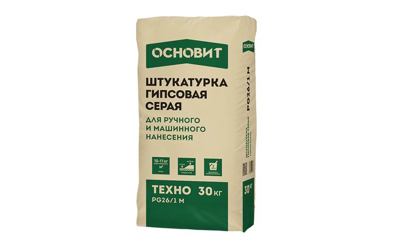 Гипсовая штукатурка серая ОСНОВИТ ГИПСВЭЛЛ PG26 M предназначена для выравнивания стен и потолков в помещениях с нормальной влажностью. Для ручного и механизированного нанесения.
